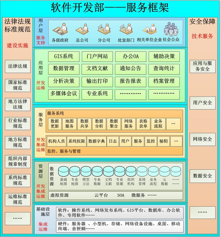 軟件開(kāi)發(fā)與系統(tǒng)集成: 不僅定制開(kāi)發(fā)通用軟件系統(tǒng),更專(zhuān)業(yè)開(kāi)發(fā)各種地理信息系統(tǒng)。采用各種地理信息系統(tǒng)(GIS)平臺(tái)與數(shù)據(jù)庫(kù)管理平臺(tái)相結(jié)合,基于手機(jī)、計(jì)算機(jī)、平板等終端設(shè)備,開(kāi)發(fā)建設(shè)BS、CS結(jié)構(gòu)的應(yīng)用系統(tǒng)。包括二三維測(cè)繪與地理信息系統(tǒng)(GIS)、管理信息系統(tǒng)(MIS)、應(yīng)急輔助決策系統(tǒng)、電子政務(wù)與辦公自動(dòng)化系統(tǒng)(OA)、電子商務(wù)平臺(tái)(EB)、虛擬仿真系統(tǒng)(VRS)、人工智能(AI)等。